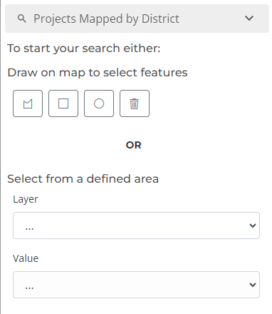 The Measurement widget is used to measure the area of a drawn polygon or the length of a drawn line on the map.