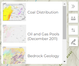 - The data layers and basemap from your map layers and basemap settings will appear on the left side of the bar